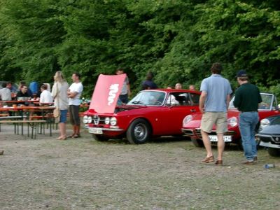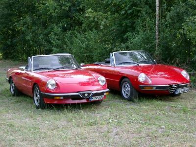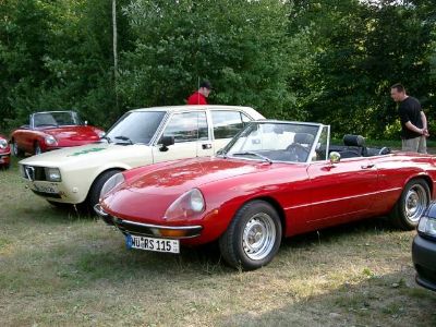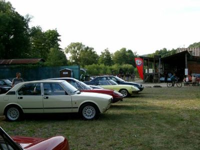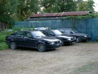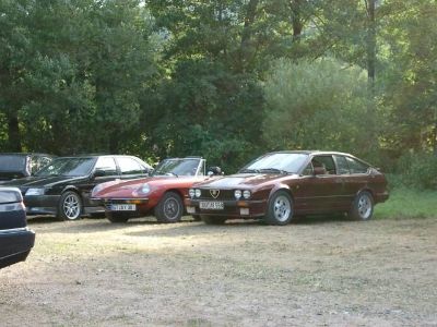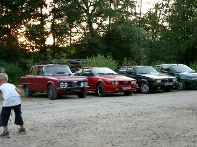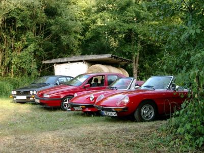 Von links nach rechts, Giulia Nova Bj. 81 GTV 6 Grand Prix Alfa 75 Turbo Alfa 146 Td mit 232000 km